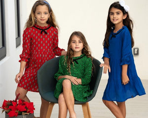 Holiday Presents Tiered Tween Long Sleeves Dress