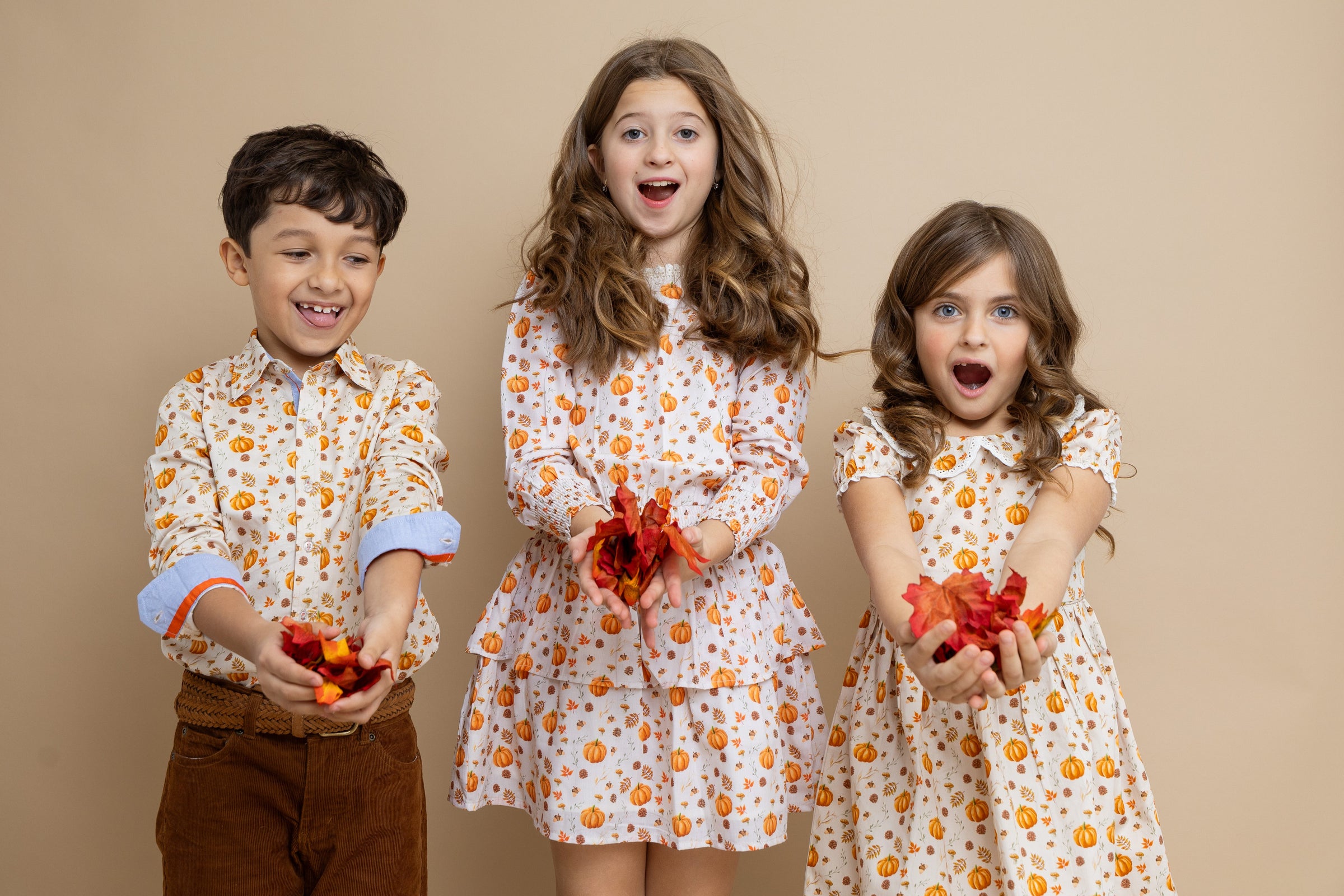 Created to capture the magic of autumn, this detailed fall-themed print features a delightful medley of pumpkins, acorns, and warm seasonal hues. It’s perfect for fall family pictures or simply frolicking in the leaves.