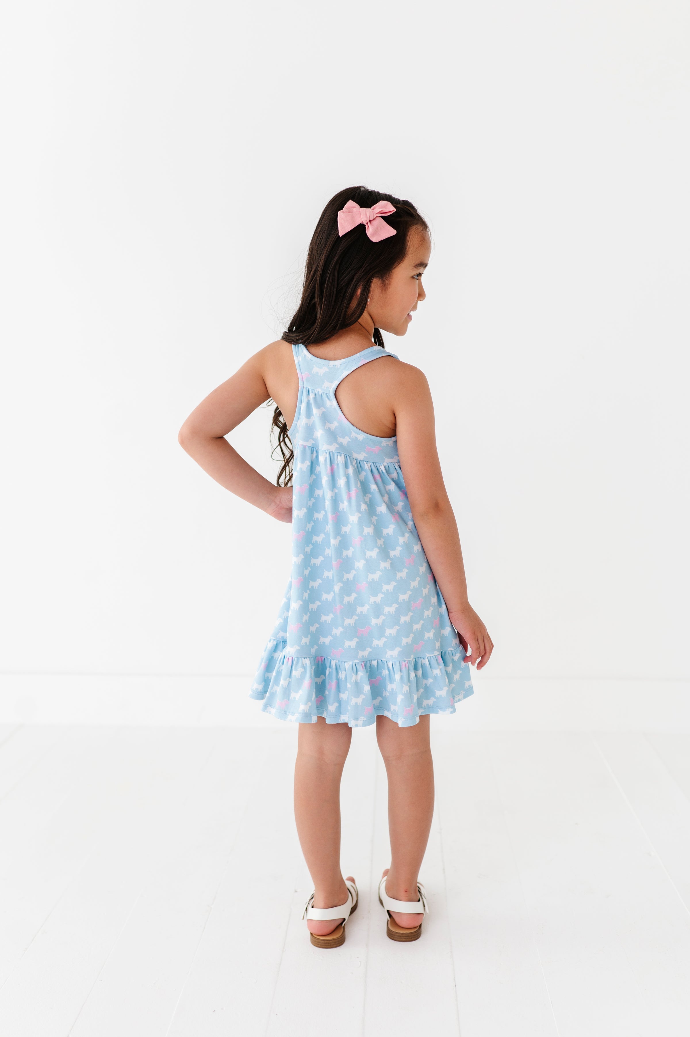 Effortlessly stylish and comfortable, this knit racerback dress offers a playful and fun look that can take her through the entire day. Featuring a ruffled hem and a touch of sporty flair, it's perfect for casual outings or sunny adventures. With its versatile design, it'll be her warm weather staple.