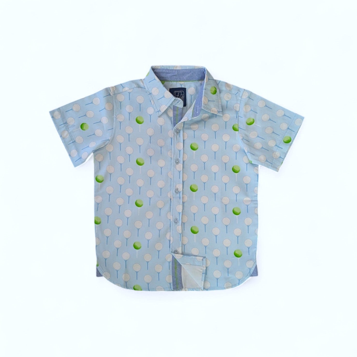 Playful with a polished twist, and impeccably preppy, this print showcases classic golf balls and tees with a modern twist, perfect for little players who love style on and off the